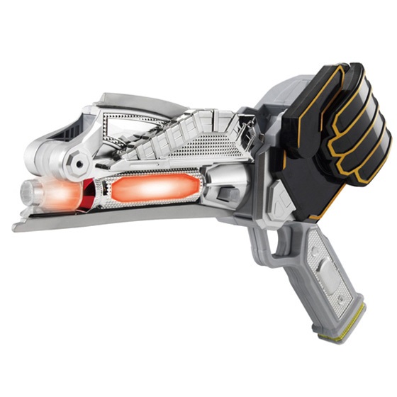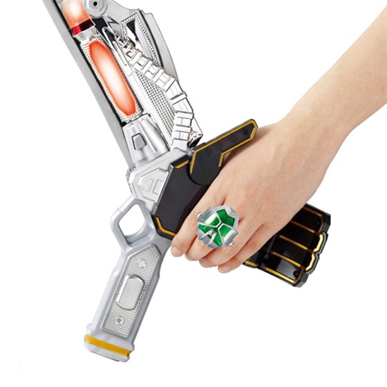 From Kamen Rider Wizard, it's the DX Wizard Swordgun! Changes between sword and gun modes and features electronic light and sound effects! Includes 2 x DX Wizard Rings!