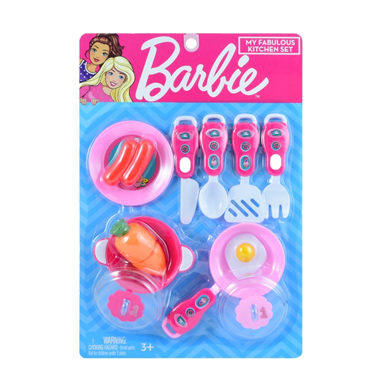 Explore “at-home” play with the Barbie collection of My Fabulous Kitchen Sets. Children and their favorite Barbie Dolls are ready to cook up a feast with this cute kitchen set. Designed in pink and white, it has all the accessories and ingredients you need in the kitchen. Whether cooking for one or 100, there are tons of stories to be told in this kitchen.