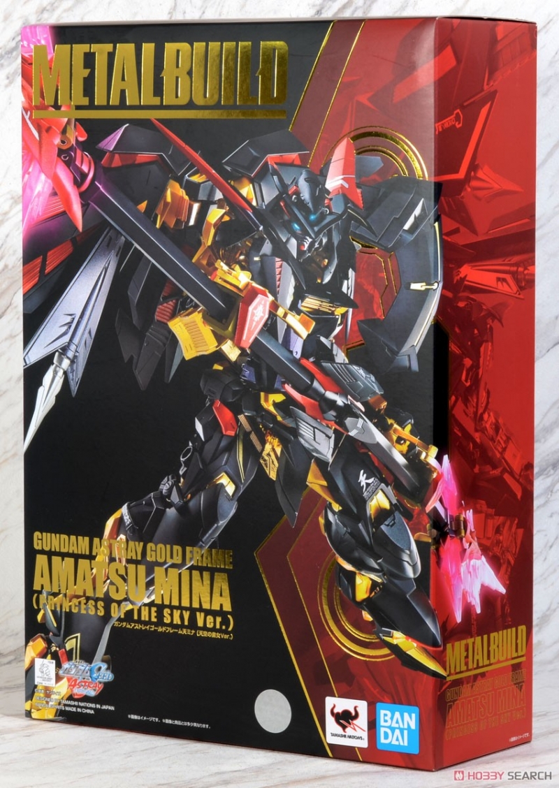 - Gundam Astray Gold Frame Ten Mina C is three-dimensionalized for the first time by arrangement by mechanic designer Junichi Akutsu. - Replacement arm parts and waist armor are included, and Gundam Astray Gold Frame Ten Mina can also be reproduced! - Okitsuno Kagami Heaven's Beam Shield and Trikeros Heaven's Beam Saber effects are included! - The golden skeleton, which represents the name of the gold frame, creates an overwhelming texture by electroplating the die-cast parts! - Okitsuno Kagami Heavenly Shield and Trikeros Heavenly Beam Saber are included to reproduce a powerful pose! - You can attach Totsukanotsurugi on both waists to Trikeros Heaven! - Separate Totsukanotsurugi from Trikeros Heaven and deploy it as a double-edged sword! - The back unit Magano Ikutachi is deployed, and dynamic poses are decided! - Two Okitsuno Kagami Ten can be equipped on both arms respectively! - Okitsuno Kagami Heaven is connected to a huge spear! - Comes with an interlocking backpack that allows you to link this machine with the Strike Gundam striker pack and an interlocking backpack for Strike Gundam!