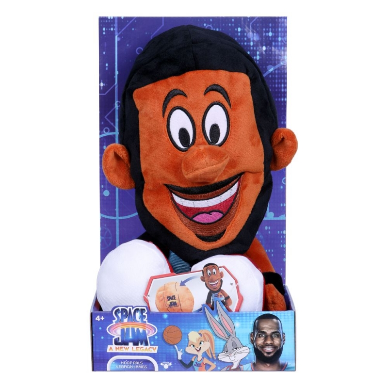 Welcome to the Jam! The Looney Tunes are back and have joined forces with Basketball Champion LeBron James on an epic cyberworld adventure in Space Jam: A New Legacy. Hoop Pals LeBron James is not just a high quality and highly detailed 12" plush toy of LeBron James dressed in his Tune Squad Team uniform. This amazing plush figure actually transforms into a plush Space Jam Basketball by turning him inside out! Made with soft, deluxe fabrics, this huggable friend is perfect to cuddle as well as being great to shoot hoops with! This cool Space Jam: A New Legacy Plush toy is made for hugs and hoops and is twice the fun!