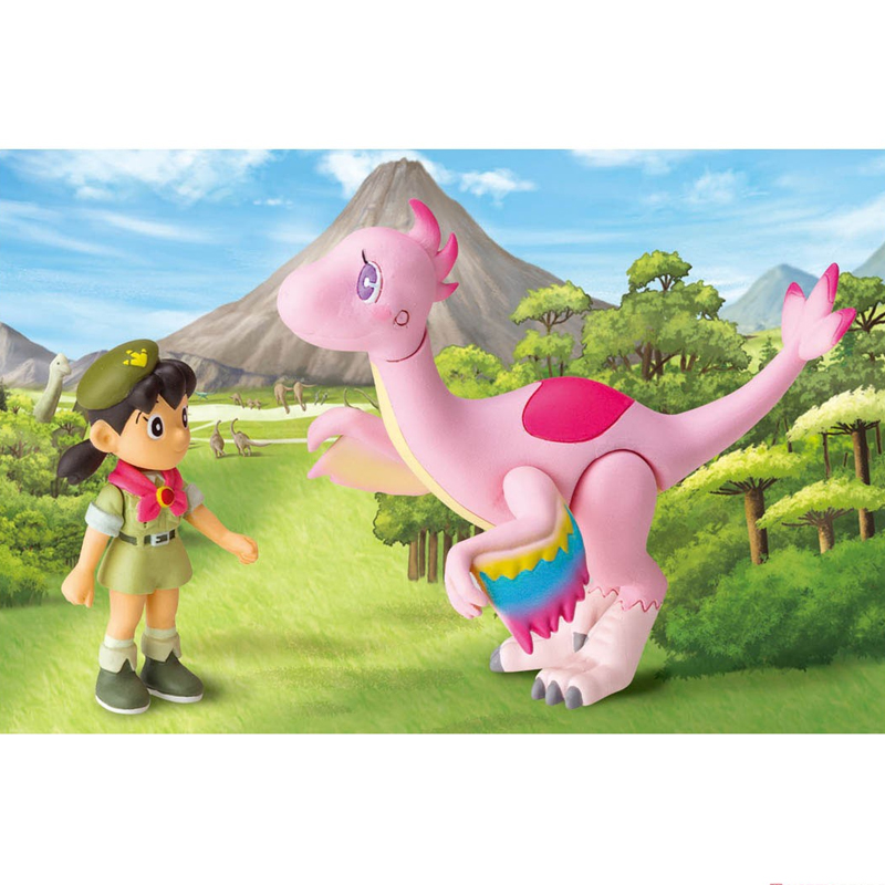 From the 2020 Doraemon movie "Nobita's New Dinosaur", Takara Tomy brings us an Ania set with Gian and his Tarbosaurus friend, Goru! You can move Gian's arms up and down, and turn his head left and right. Goru's jaw, tail and legs can be moved as well.
