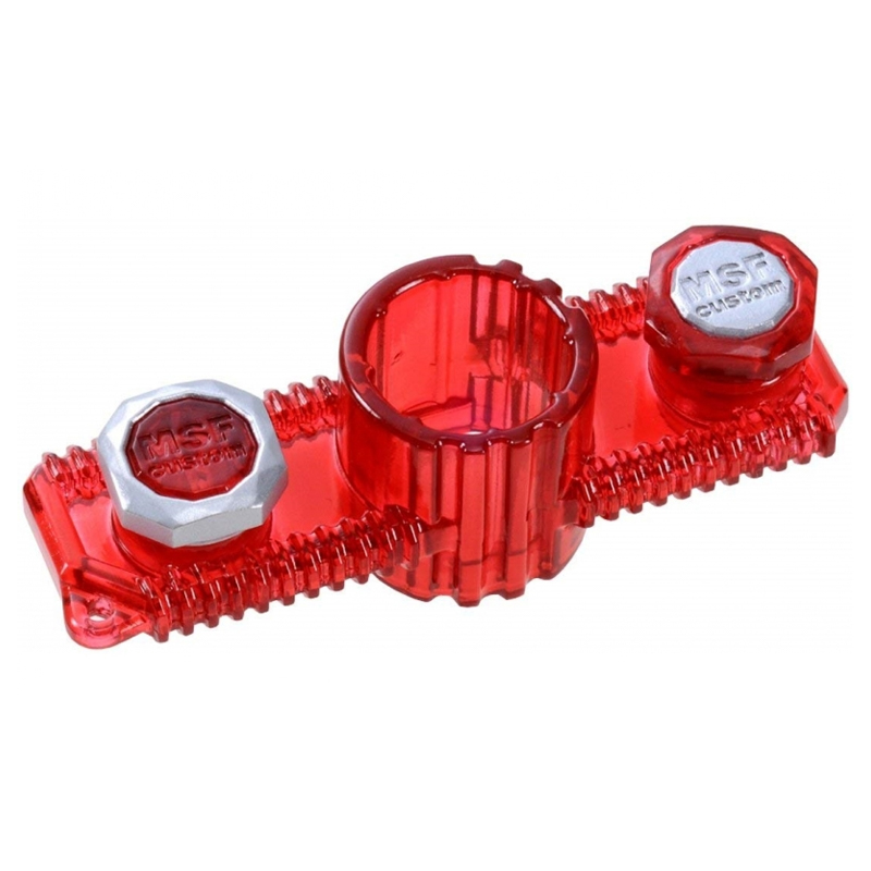 Metal Stone Faces follow the same concept as regular Stone Faces; the Stone Face acts as a Screw/Bolt to keep the Beyblade tightened together. However, it is, obviously, made of metal. It is octagonal in shape, rather than a hexagonal shape used in the previous HWS and 4D Systems. The Bolt also seems longer than its predecessor, most likely to deal with the occompaniment of new kinds of wheels.