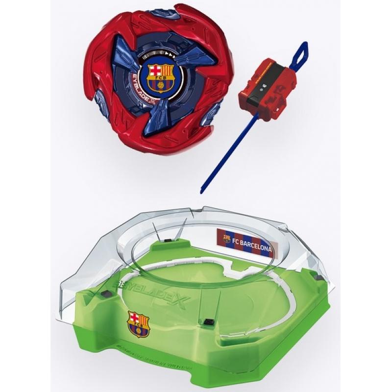 A kick-off set that includes the Hell Hammer 3-70H Metal Coat :Red, which expresses the image colour of FC Barcelona as well as a winder launcher and stadium inspired by a soccer stadium.