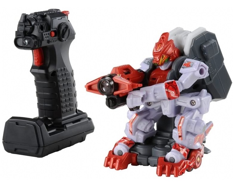 Enjoy full-scale gun battle robot hobby with the new series of "Gagan Gun"! Using a controller to command the robot's movement and laser gun to take down the opponents.Â