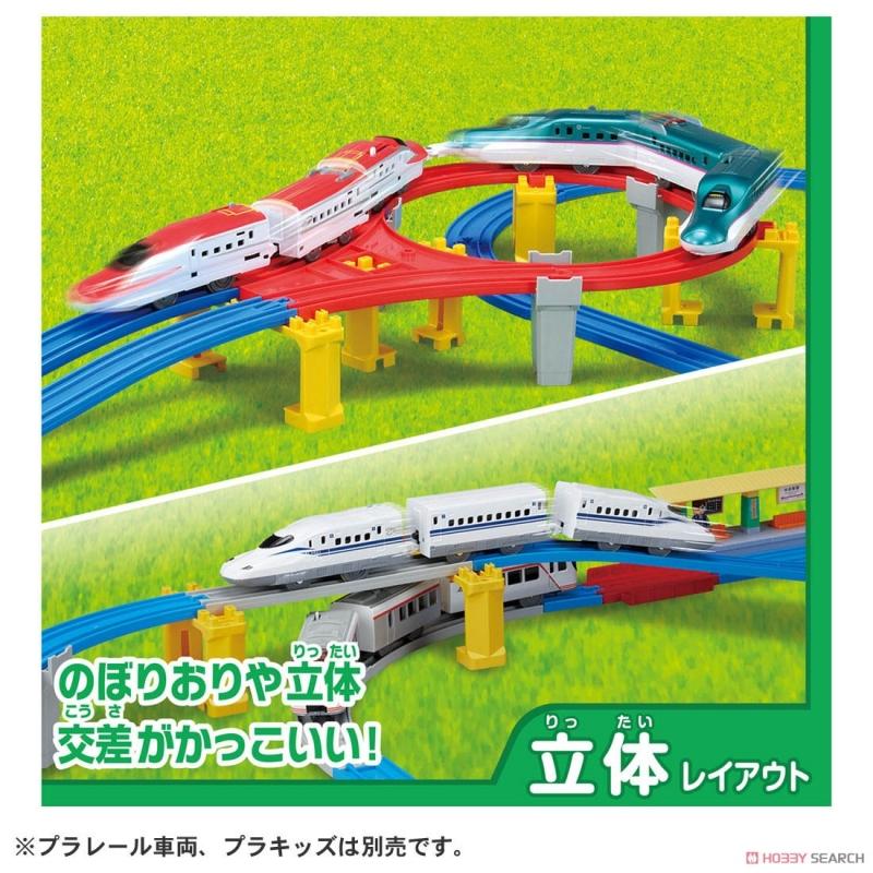 - 25 types of rails and scenery, total 63 parts! - You can get various types of rails at once, such as slope rails, double-track outer curved rails, turnout rails, single-track/double-track point rails, and U-turns! - You can create 20 different layouts by rearranging! - Includes parts that allow you to assemble the popular [three-dimensional layout]!