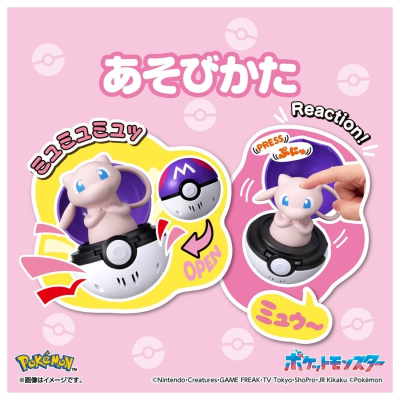 Every time you open the Master Ball, Mew pops out! When you poke it, Mew will talk! Every time you open it and poke it, you can enjoy different reactions from Mew! If you poke repeatedly, you'll hear a special reaction!