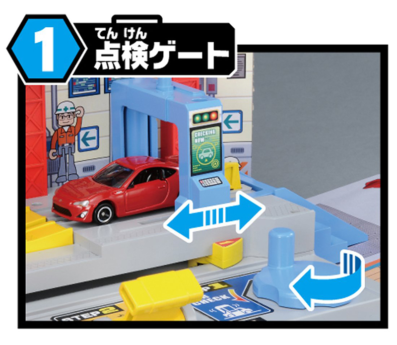 Turntable Pressing the button turns the rotating table and completes maintenance! Tomica comes out in front.