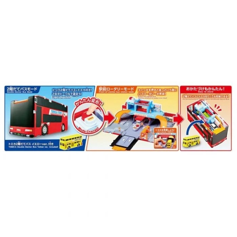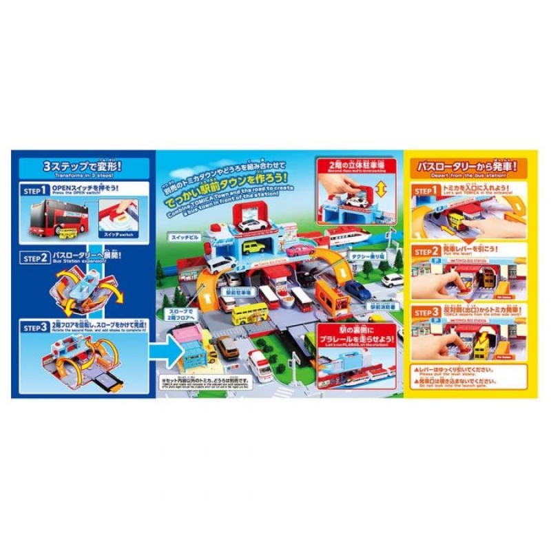 3: Comes with die-cast Tomica cars! Play with two vehicles! This one product is all you need to start playing right away! Expands play possibilities! Great value set! Perfect for a child's first big vehicle! Even Tomica beginners can enjoy playing with it. Transforms into a town for more complex play, providing long-lasting fun as your child grows!